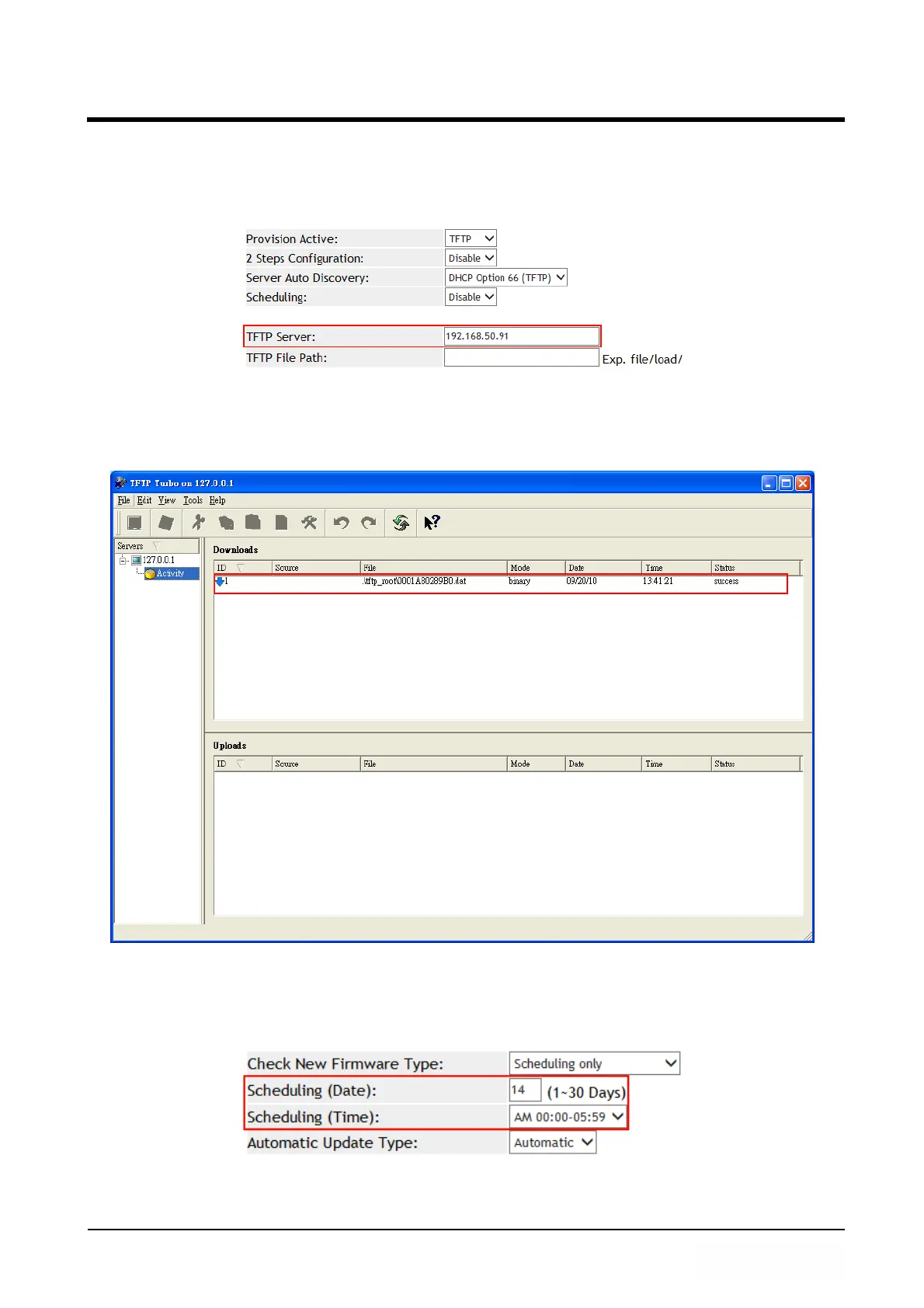 Step 2: In [Auto Provision Setting] web page, Set up [Provision Active: TFTP, Scheduling: