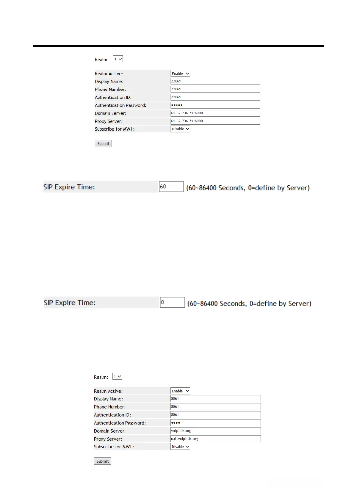 Step 2: In [SIP – Advanced Setting] web page, Set up [SIP Expire Time: 60] (See Figure