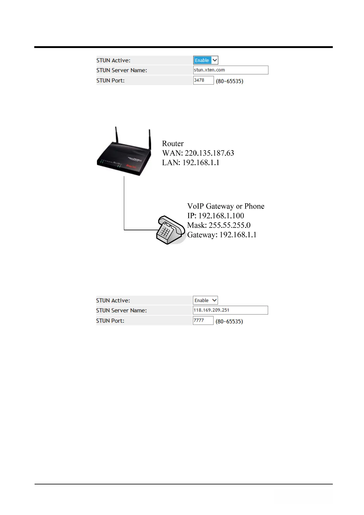 Step 2: In [STUN Setting] web page, set up [Force Active: Enable, Public IP Address: