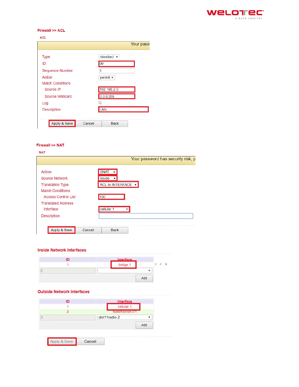 4. Now define the inside and outside interface.