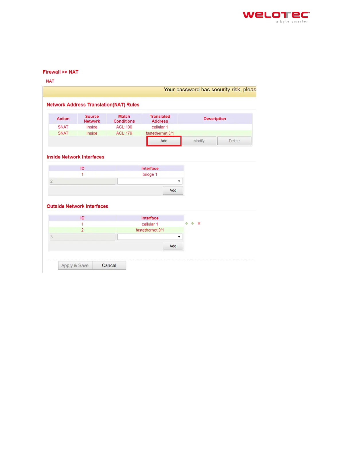 1. Go to the menu item Firewall and select the sub‑item NAT.