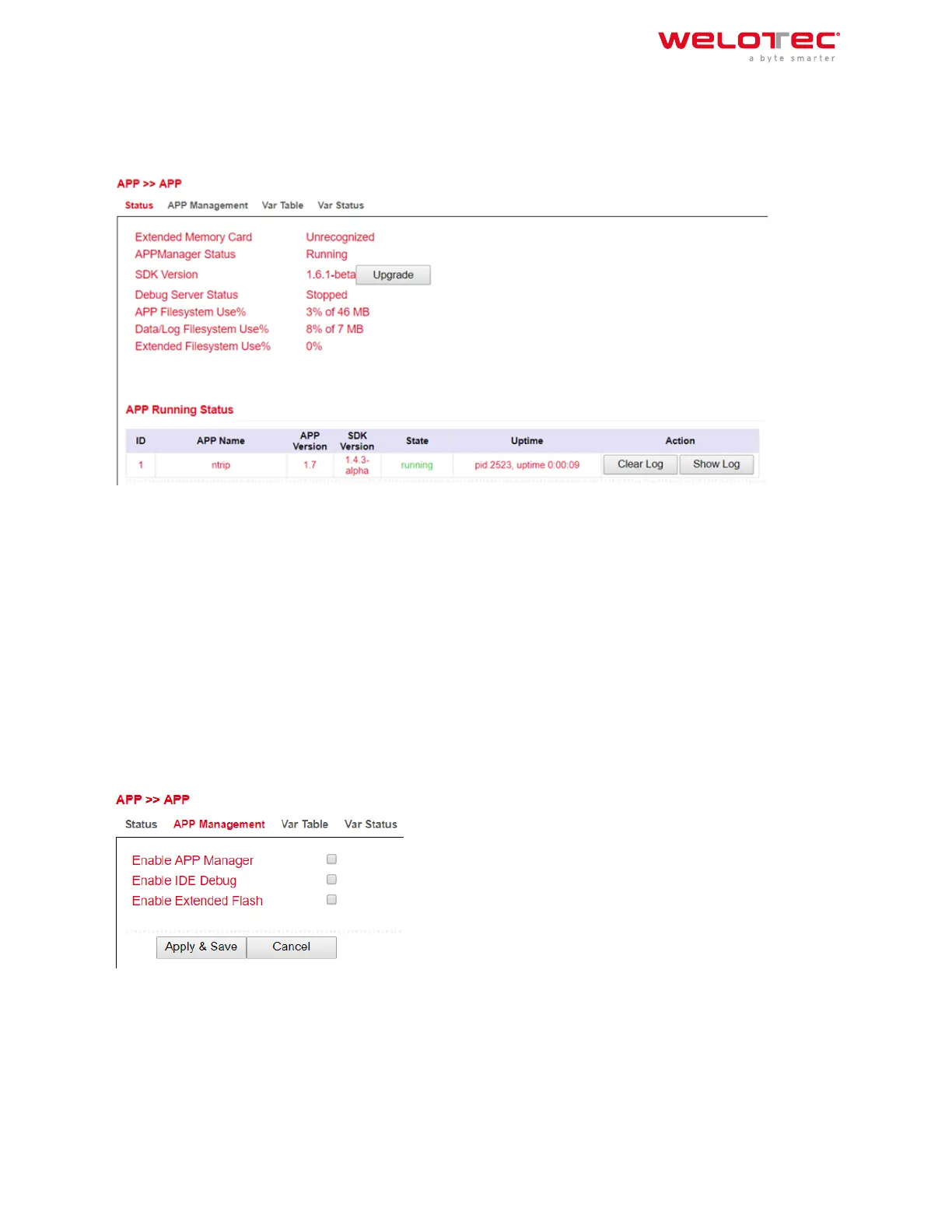 To do this, please enable the Enable APP Manager and Enable IDE Debug functions. Then click Apply & Save.