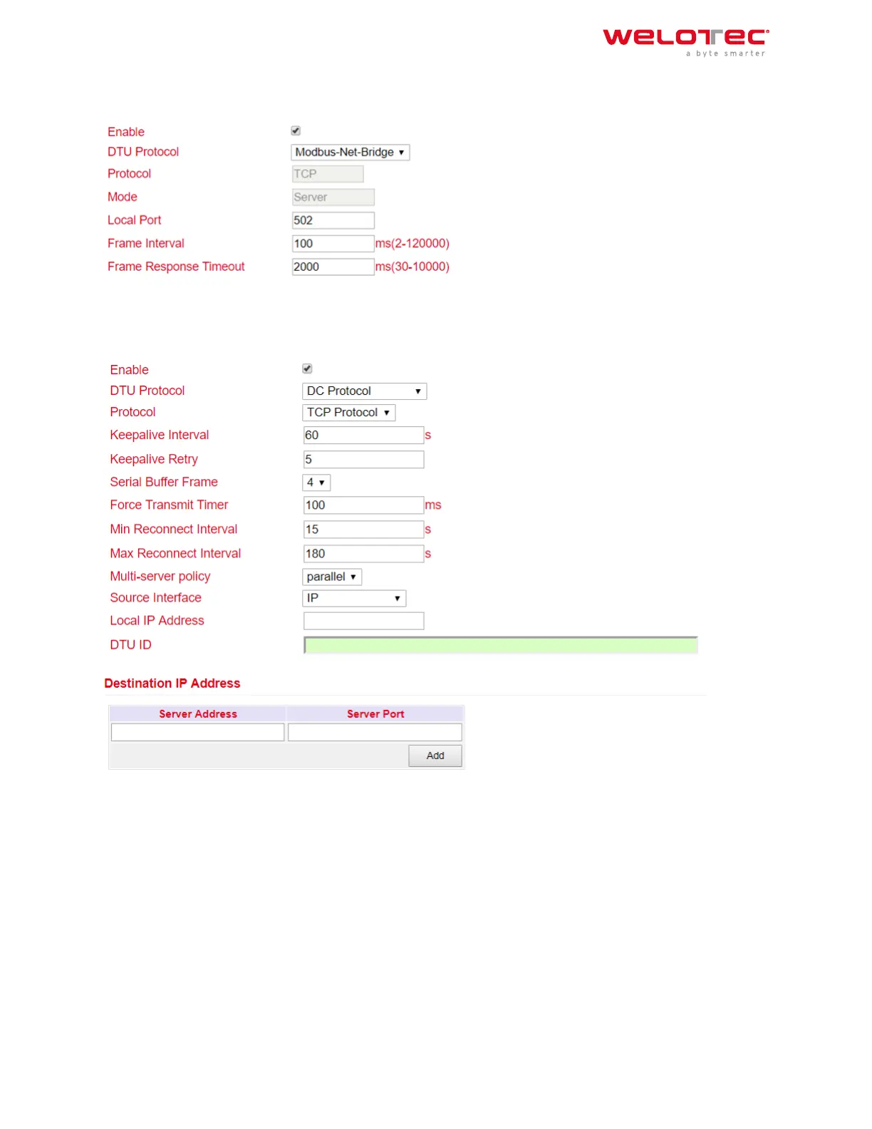 Select Modbus‑Net‑Bridge at DTU Protocol