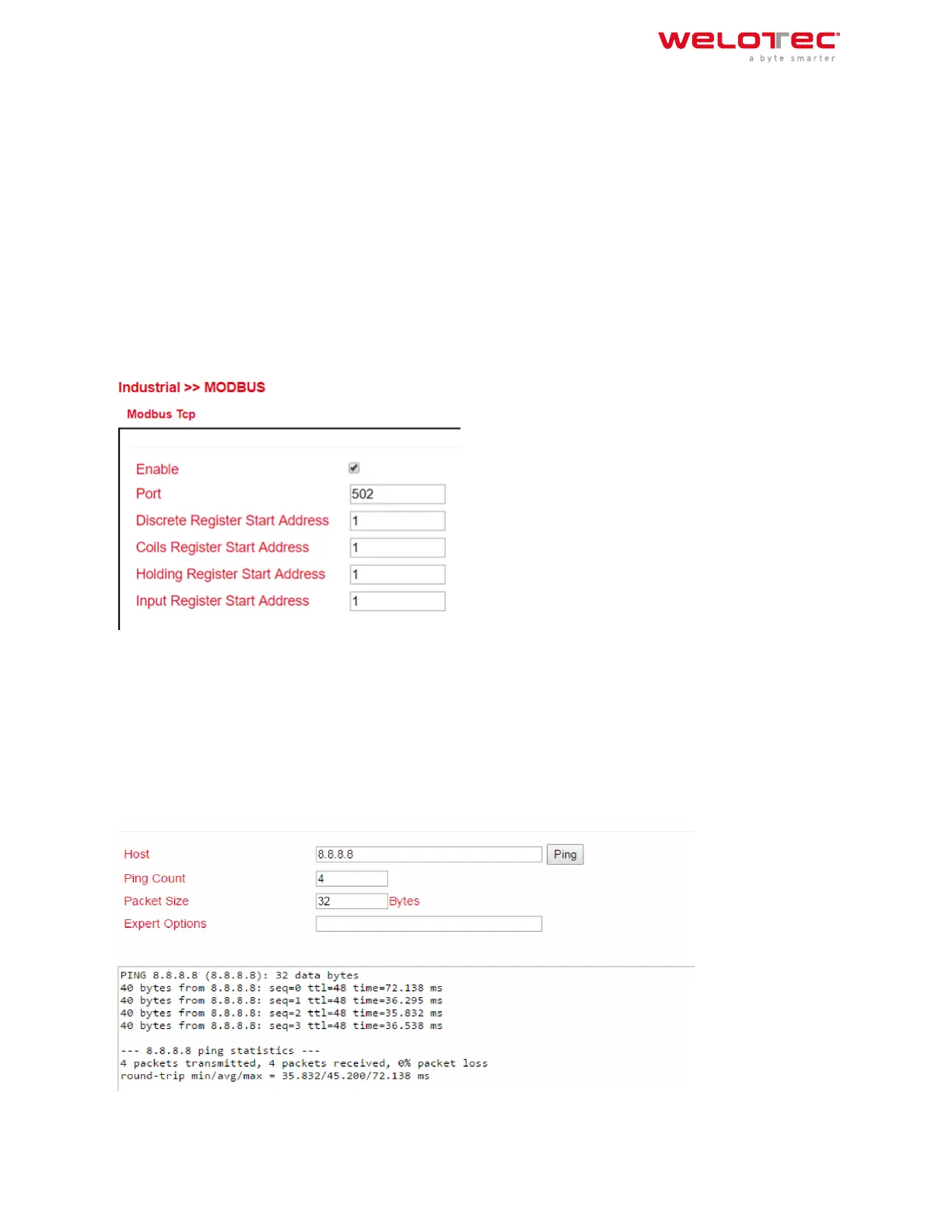 Via Industrial > Modbus > Modbus Tcp you can switch the corresponding settings on or o.