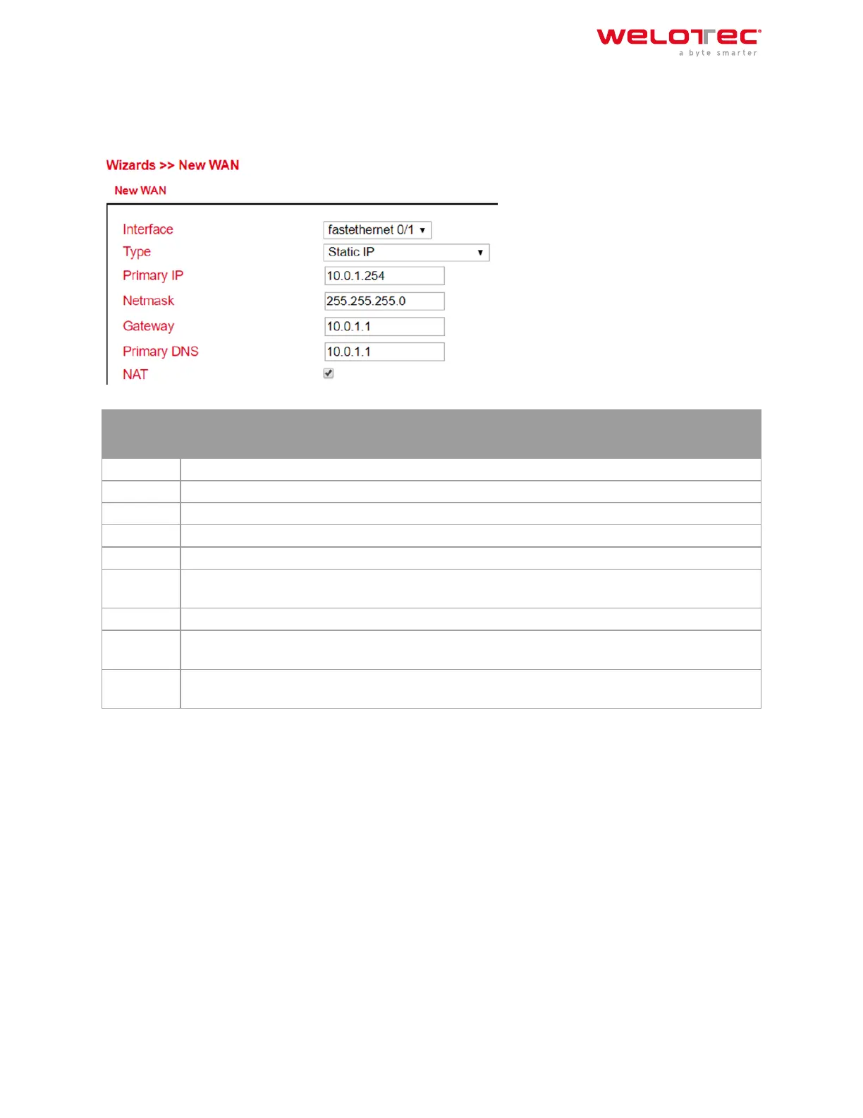 With the help of Wizards > New WAN a new WAN interface can be set up. We recommend that you also do this via