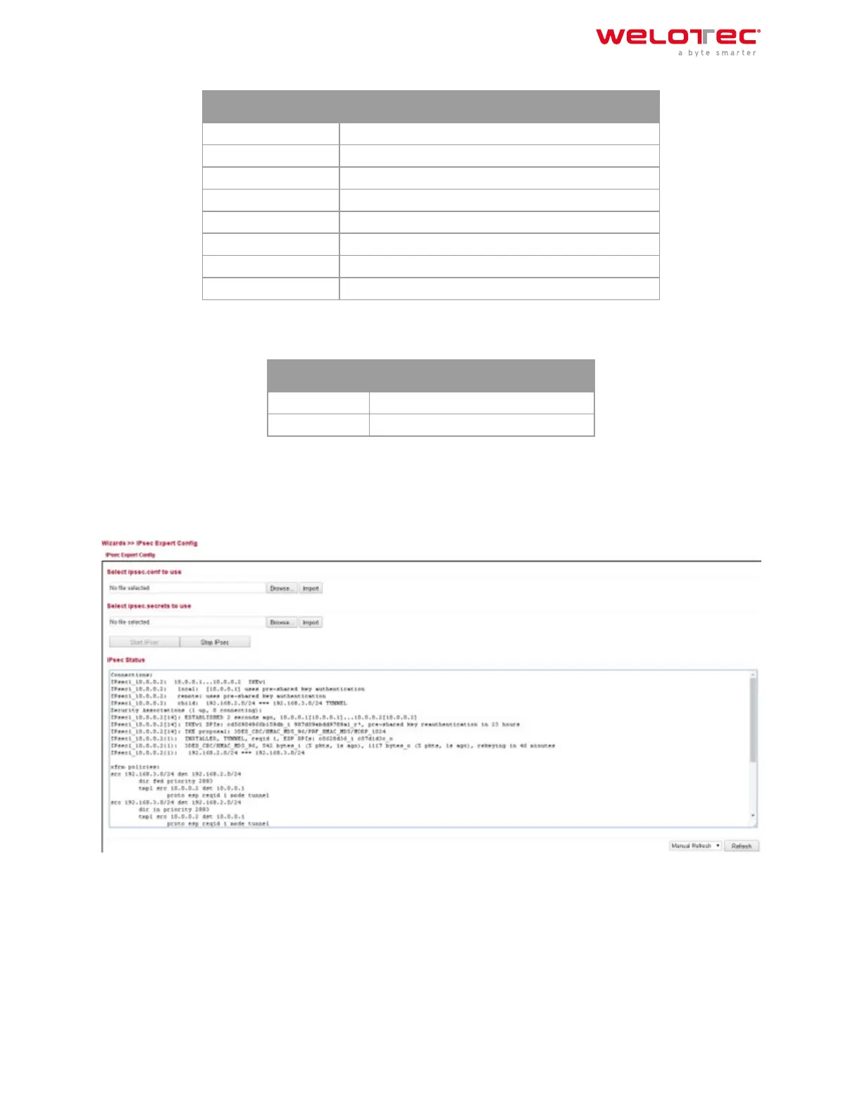 Under Wizards > IPsec Expert Config you can check the IPsec tunnel status by clicking Refresh. Furthermore, IPsec