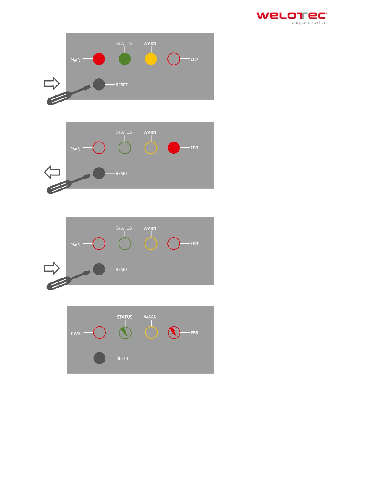 3) Aer a few seconds, the ERROR LED no longer lights up. Now press the RESET key again until the error light