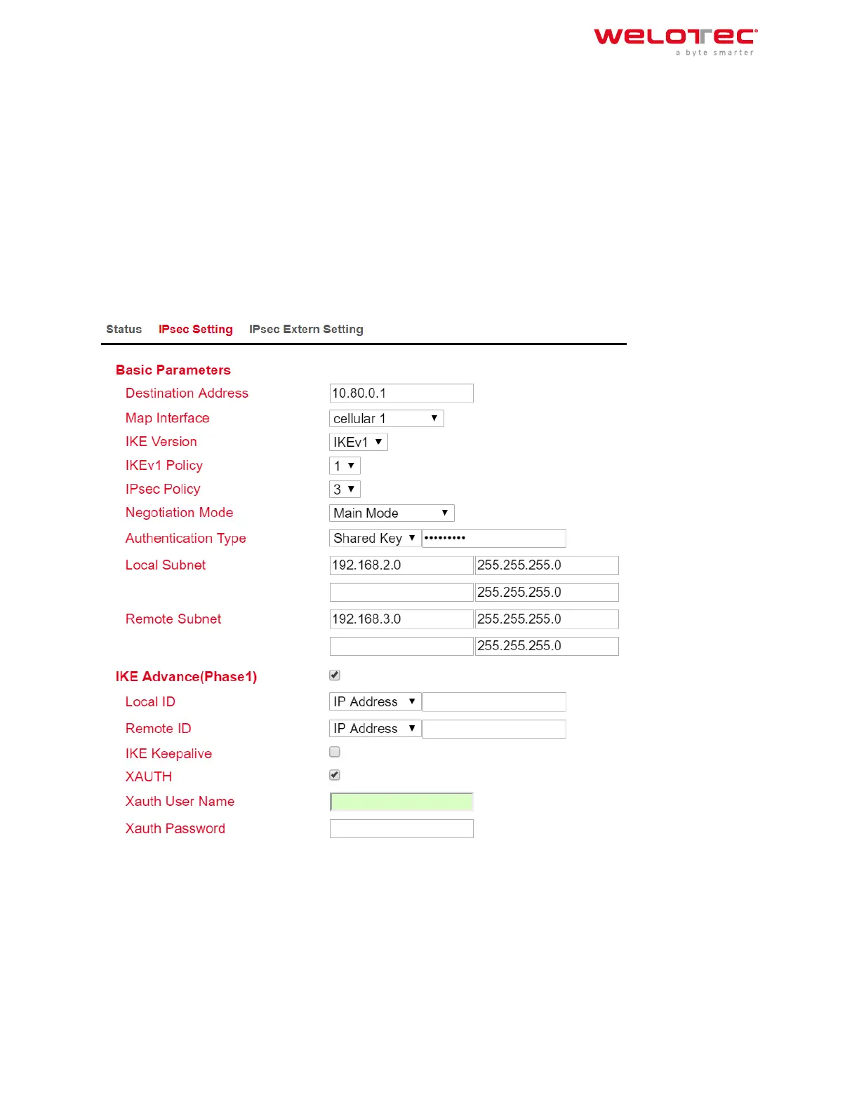 • Authentication is used for authentication and can be selected with MD5, SHA1 und SHA2.