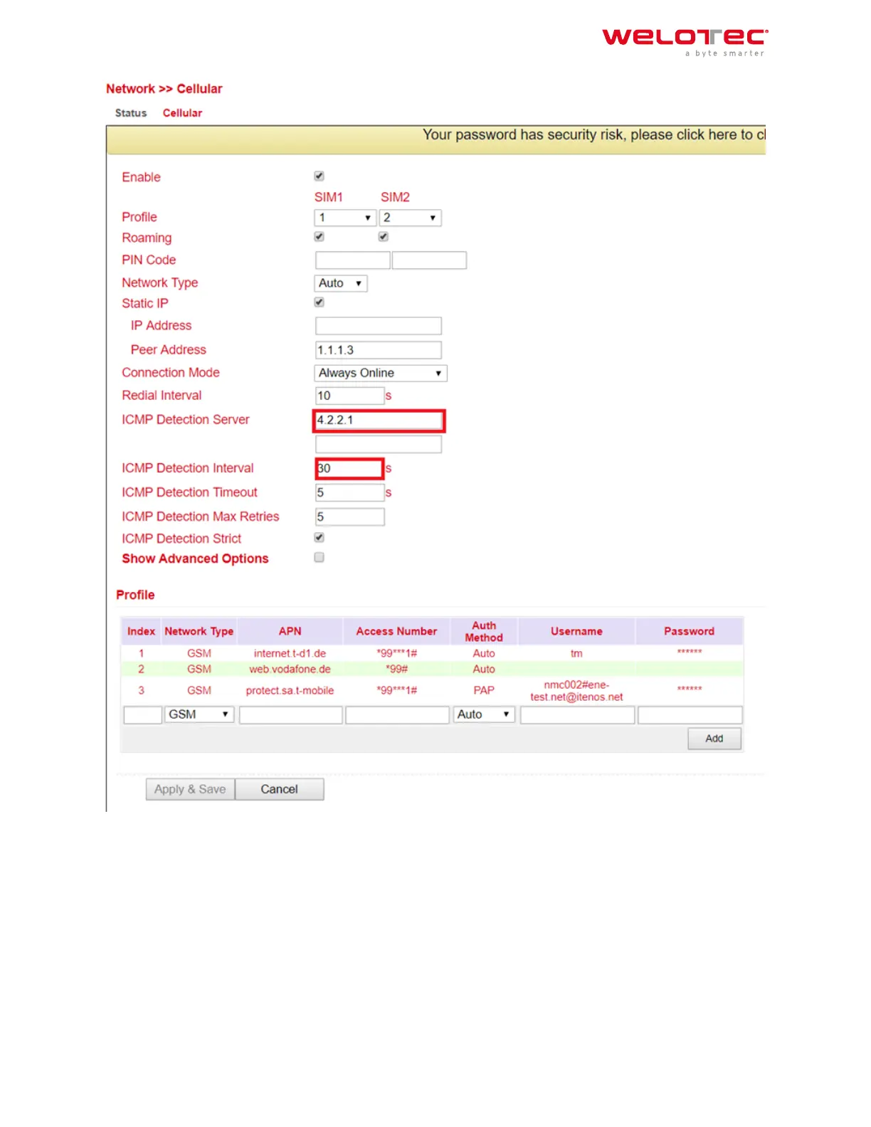Note: The registered ICMP detection server should have a very high accessibility. A server from Google is no longer