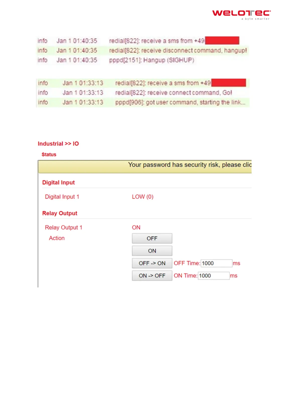 Another important SMS command is to switch the digital relay on or o via SMS.