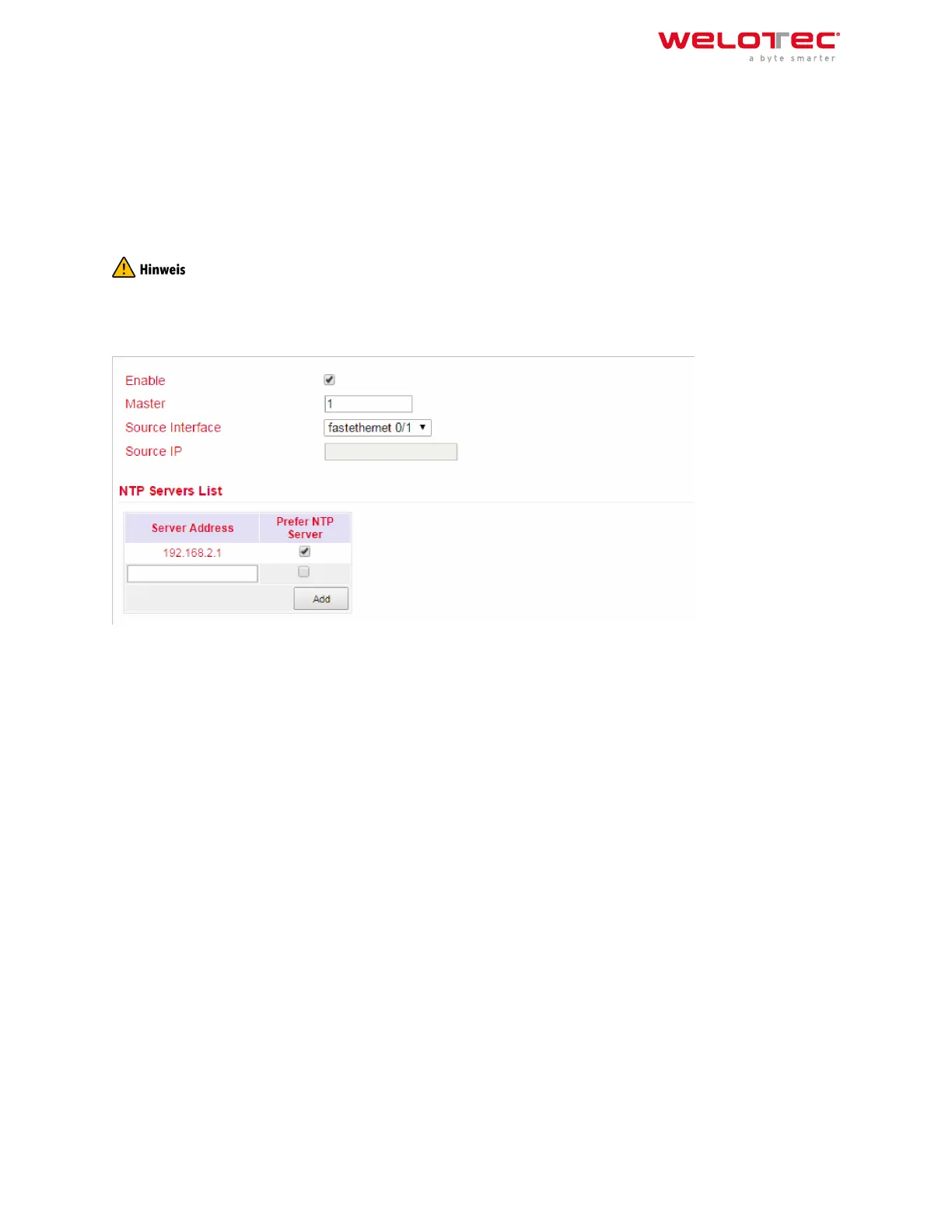 client and NTP server an NTP service from the Internet must be entered. For this purpose the address of the NTP