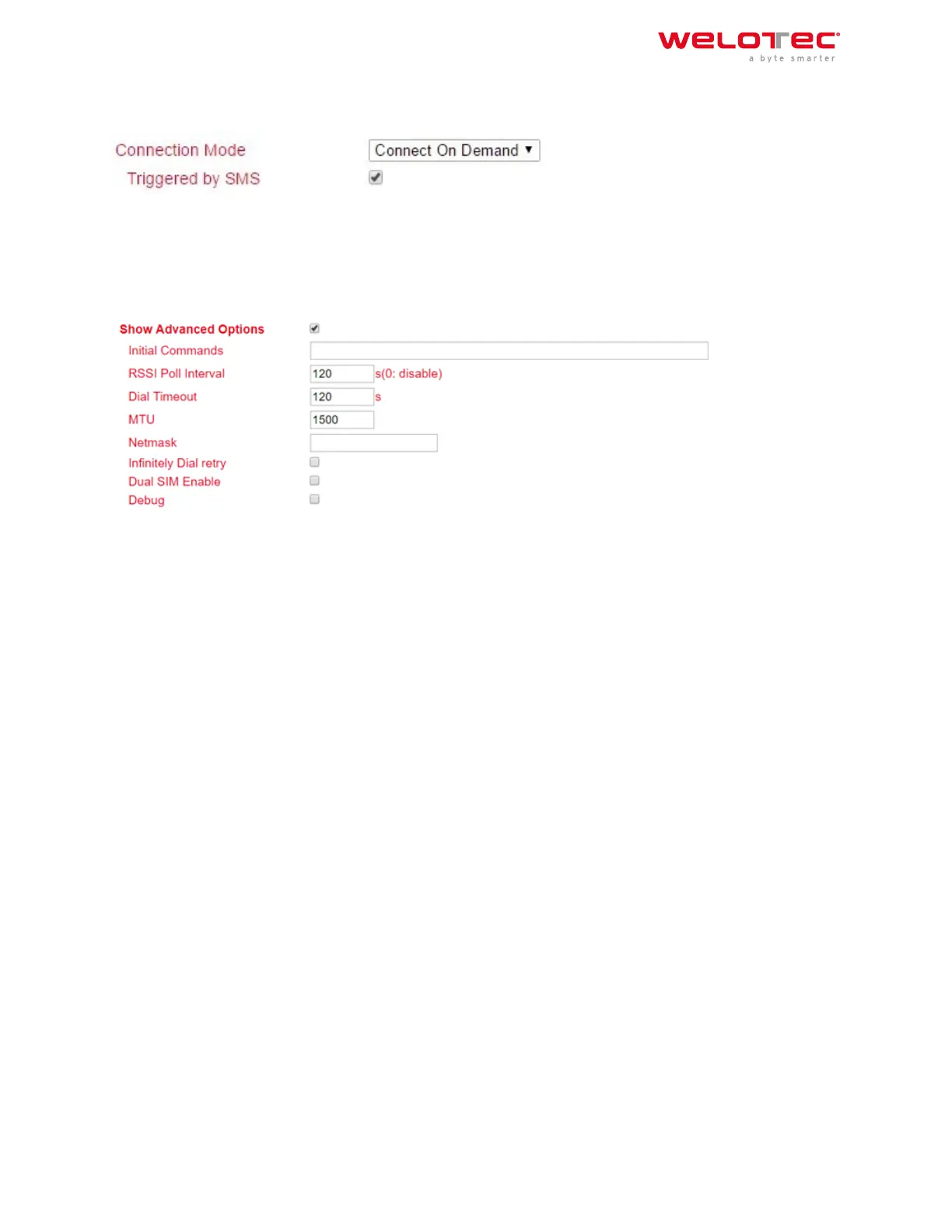 Hereyouhaveto setthecheckmarkat Triggered by SMS.Therouterwillonlyconnectto the Internet if it has received