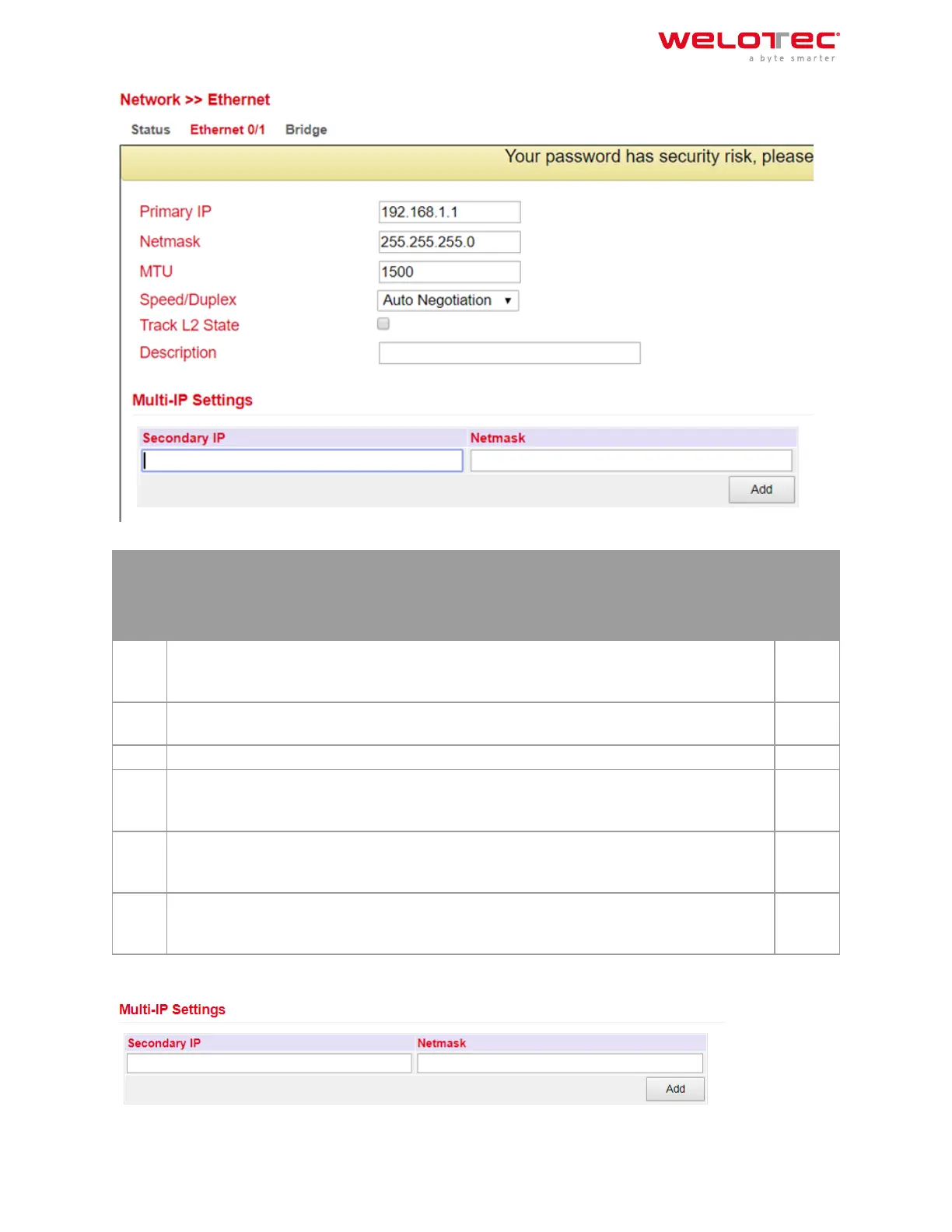 In the lower menu additional IP addresses can be assigned for the FastEthernet 0/1 port.