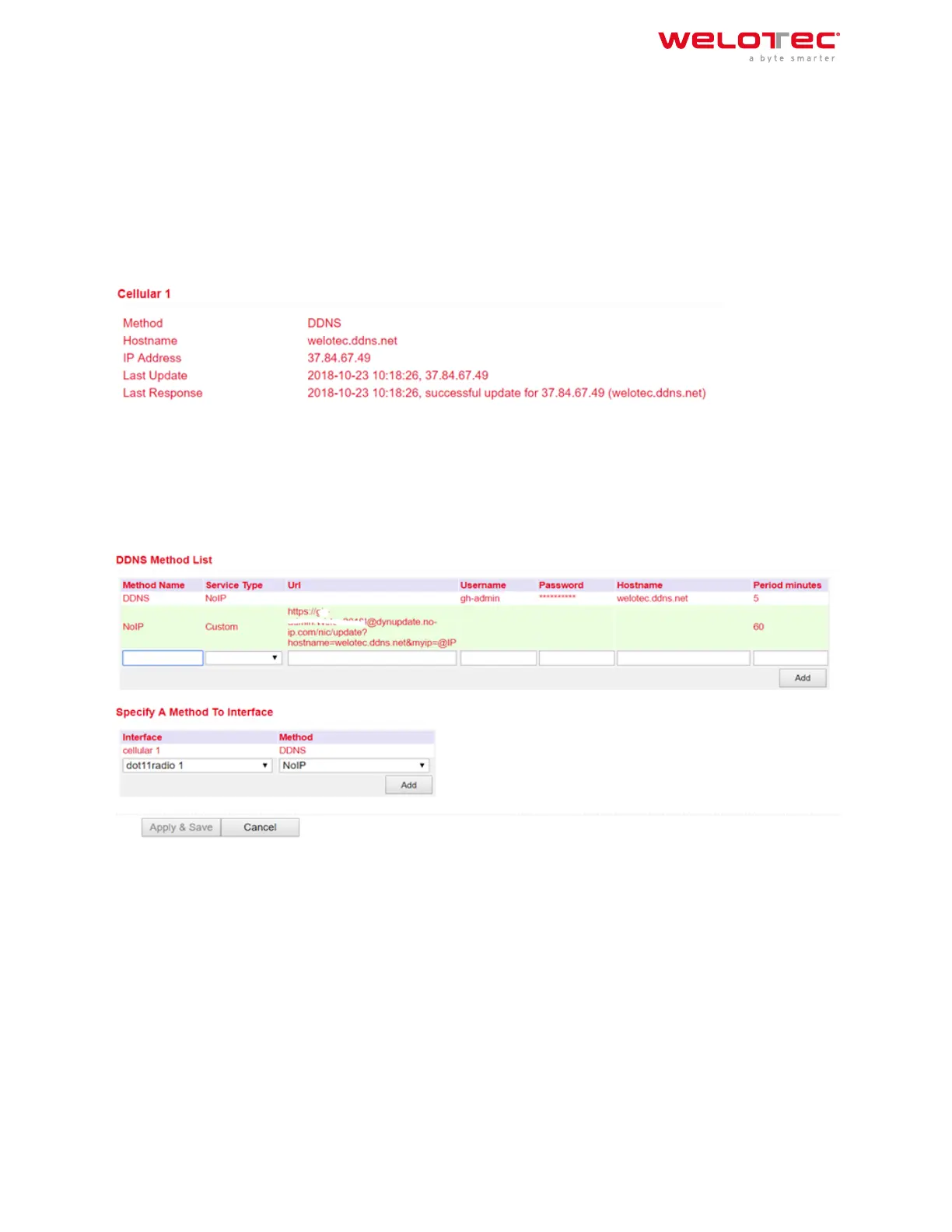 Under Services > DDNS > DDNS you can add a new DDNS service. It is important that a new DDNS service is created