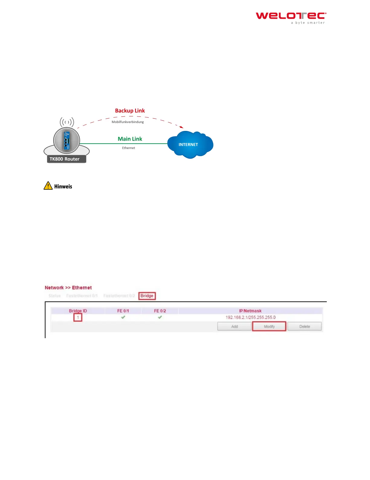 3. Click here in the line with the Bridge ID 1 and edit the entry by clicking Modify.