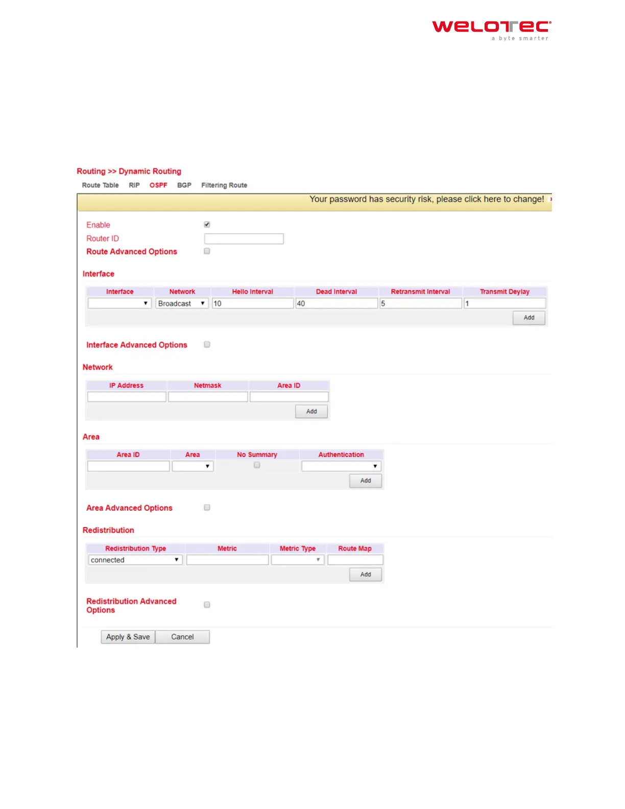 In the menu Routing > Dynamic Routing > OSPF you can adjust the following settings: