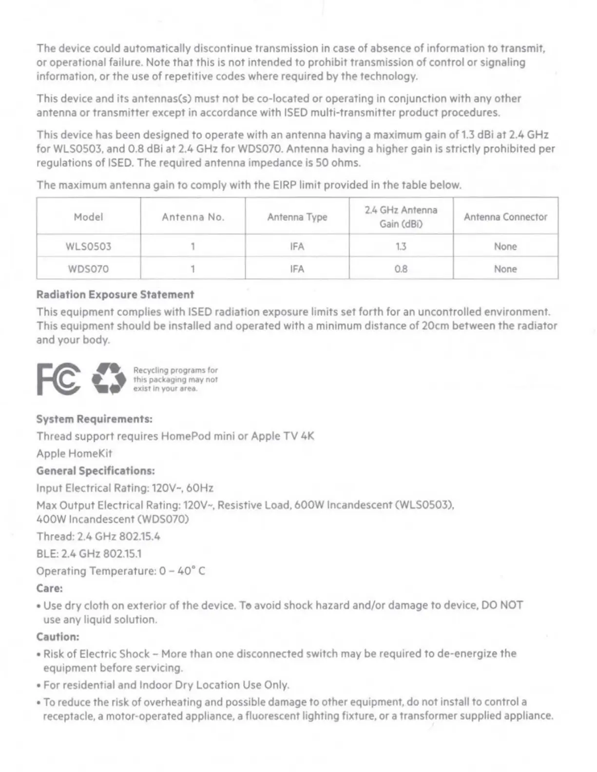 WLS0S03, and 0.8 dBi