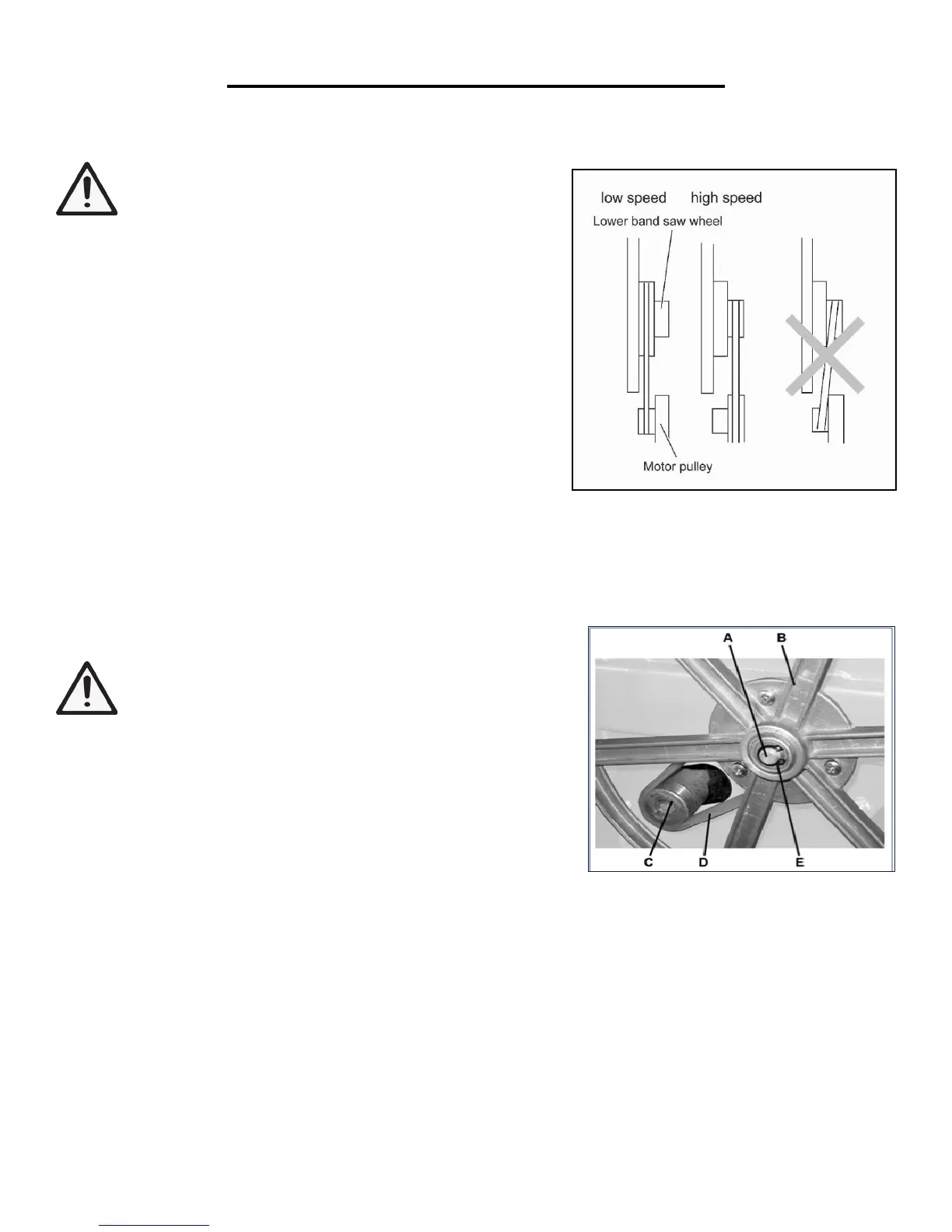 11. Push the motor down to add tension to the belt (E). The belt is properly tensioned when moderate finger