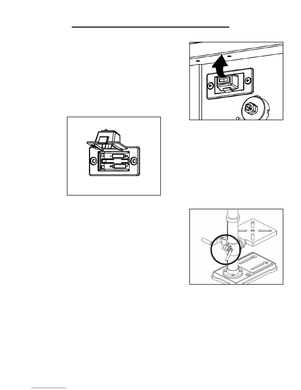 2. Tighten the table locking handle before drilling.