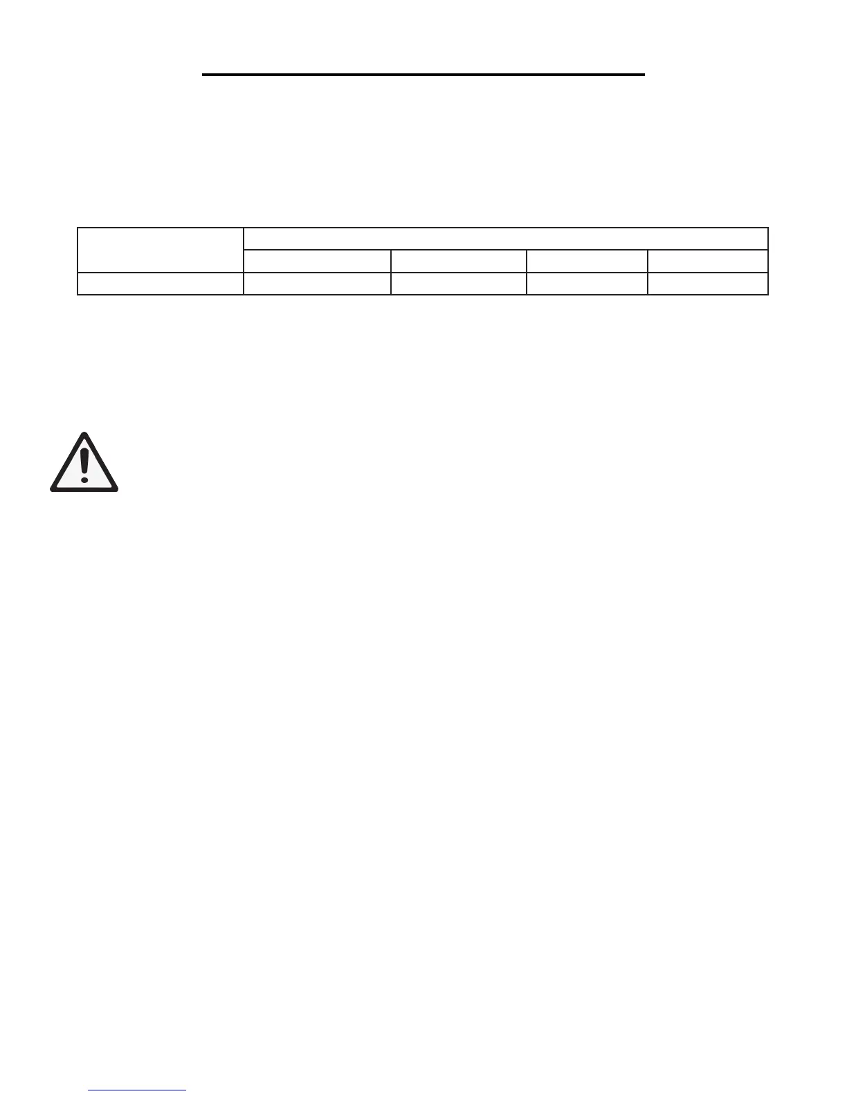 in loss of power and overheating. The table below shows the correct size to be used according to cord length and