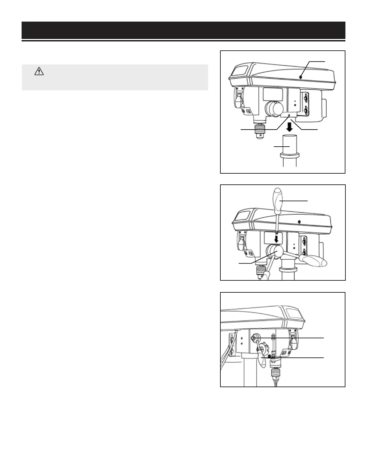 1. Carefully lift the drill press head assembly (Fig. 5 - 1) and