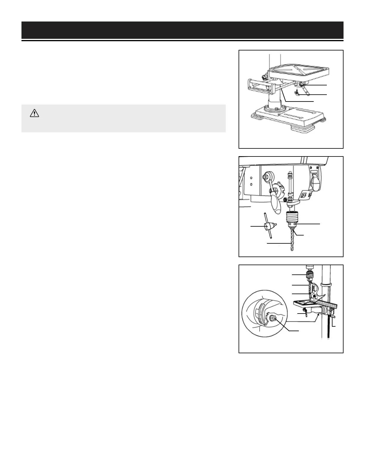bit will not slip while drilling. Tighten all three keyholes on the chuck.