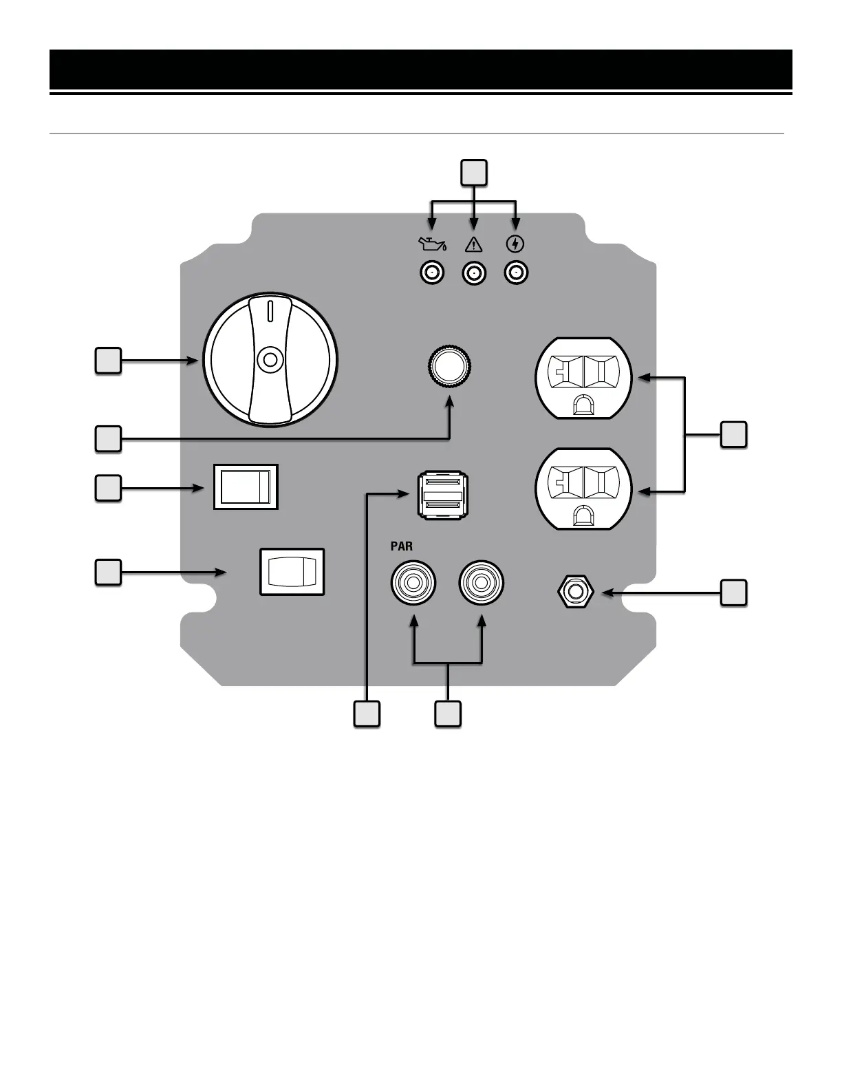 Low Oil (Yellow), Overload (Red), & Output (Green).
