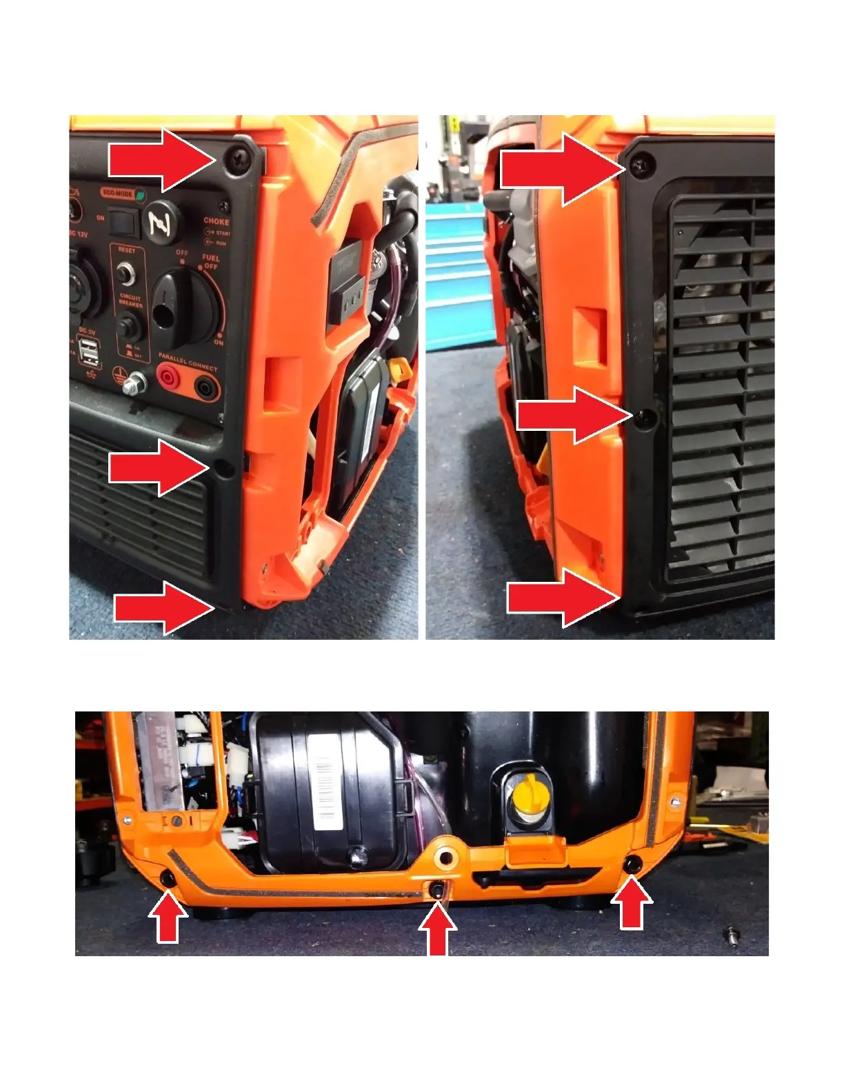 6. Use the socket and ratchet to remove the 3 screws at the bottom of the generator’s shell. See Fig. 4 below.