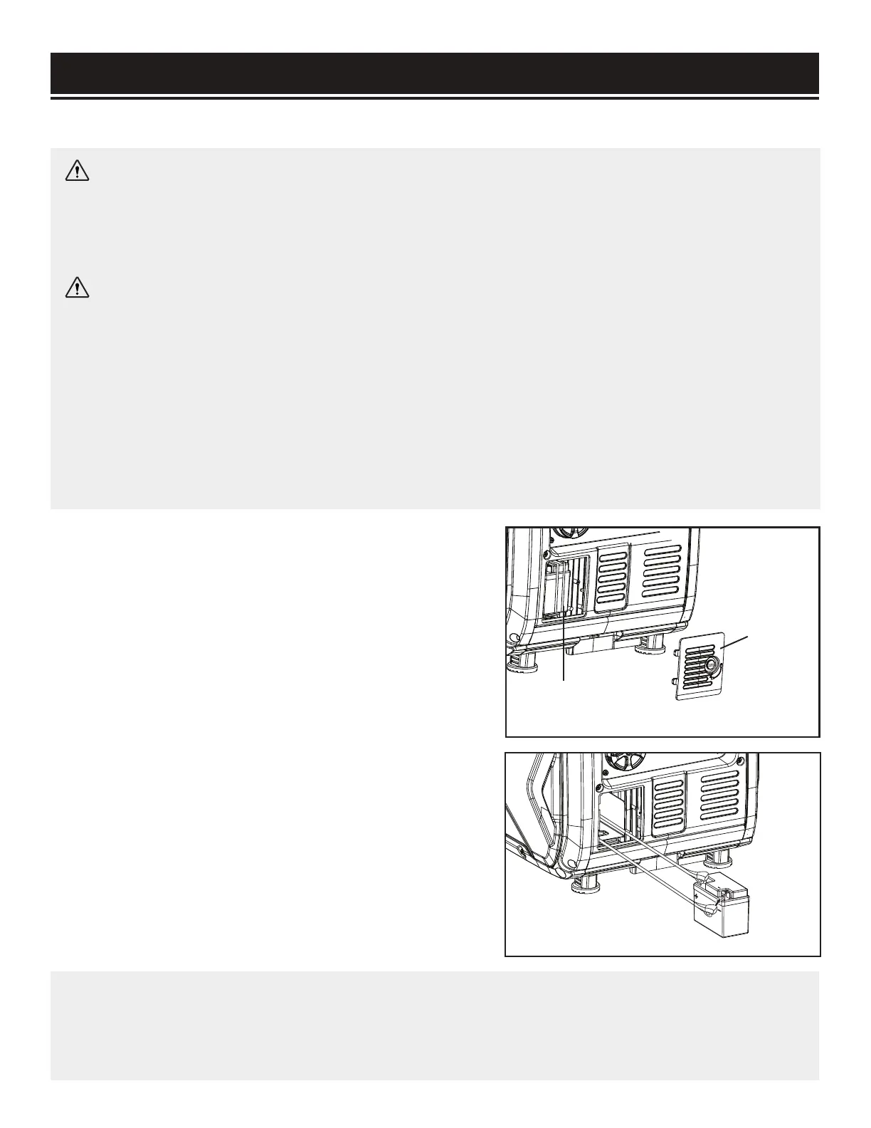 WARNING: Battery contains sulfuric acid. Battery acid is poisonous. Tilting the generator with the