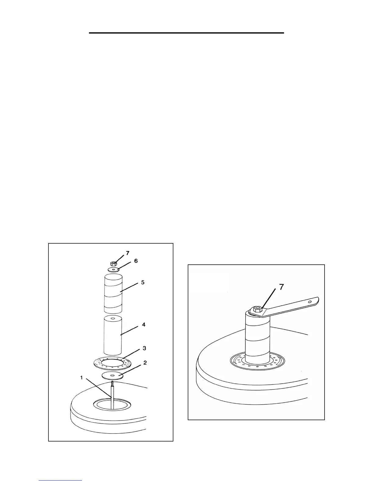 7. Place the appropriate upper spindle washer (6) over the spindle (1).