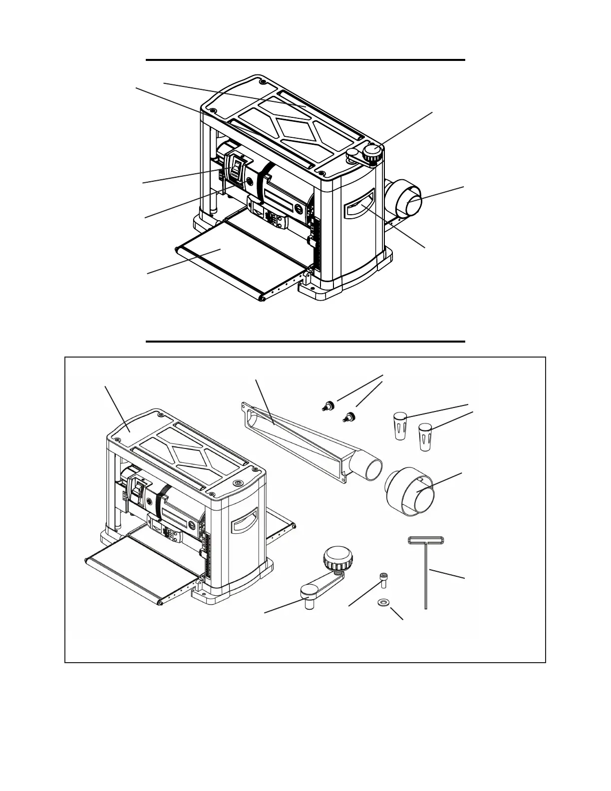 The planer comes assembled as one unit. Additional parts which need to be fastened to planer should be located