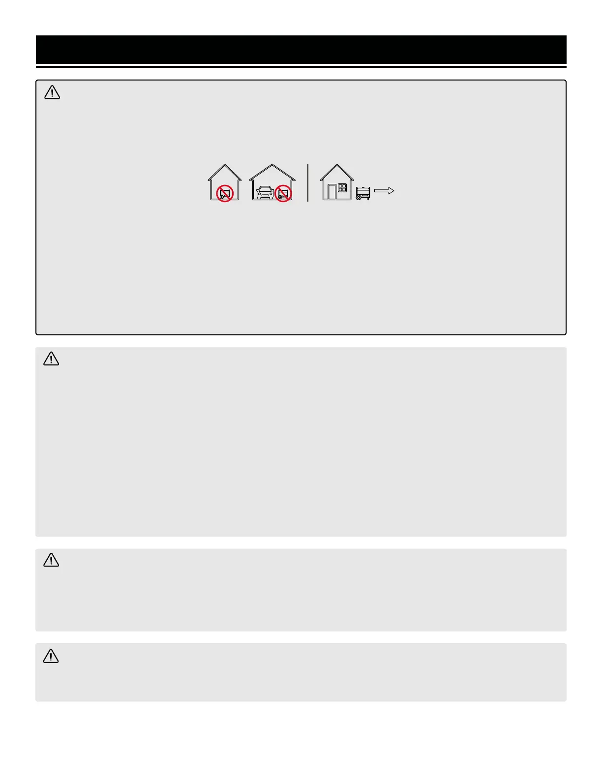 NEVER use a generator inside homes, garages, crawl spaces, or other partially enclosed areas. Deadly levels
