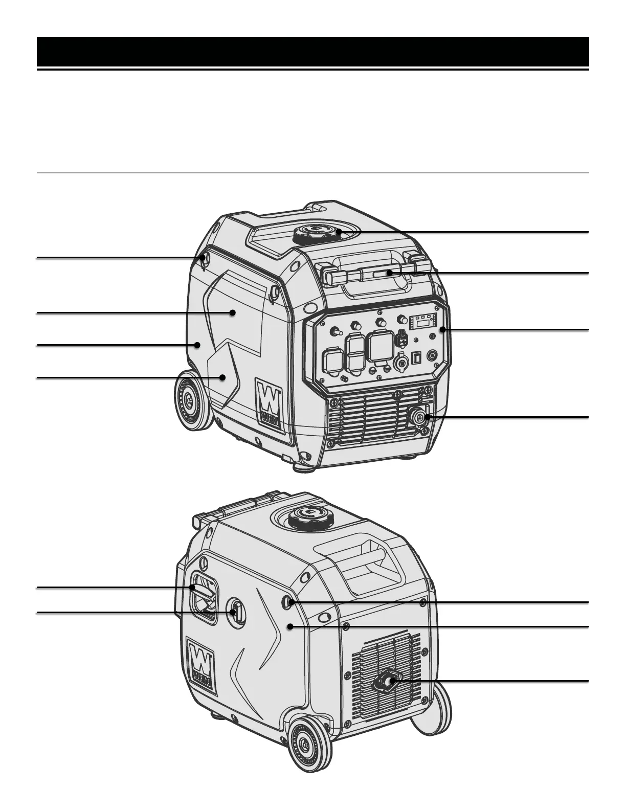 lowing diagrams to become familiarized with all the parts and controls of your Generator. The components will be