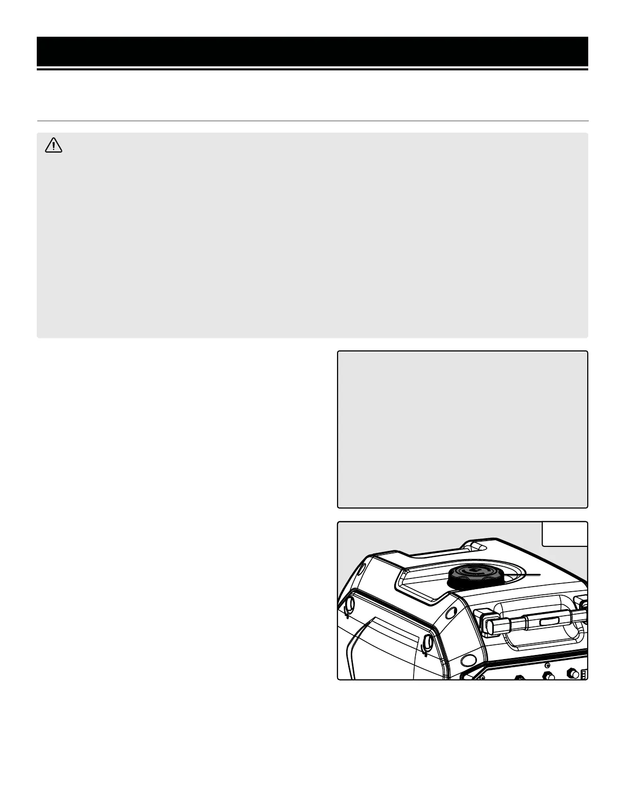 • Always turn generator off before refueling. Allow generator to cool for at least 2 minutes before removing