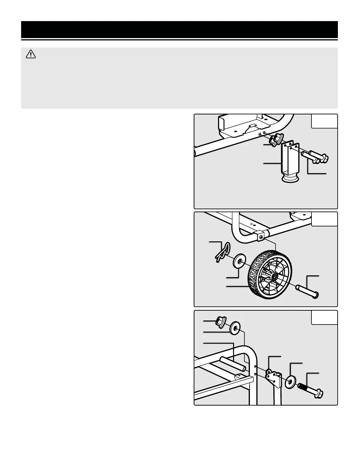 tor frame. Slide the axle pin (Fig. B - 2) through the wheel,