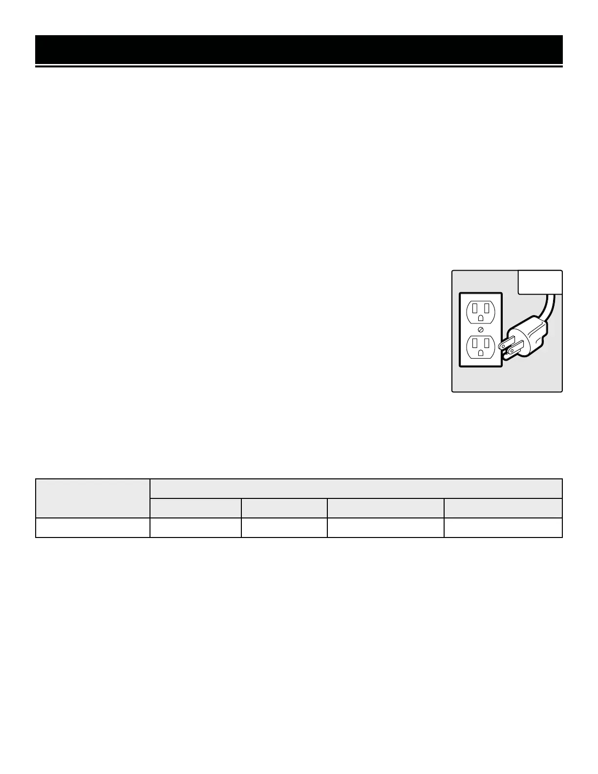 The table below shows the correct size to be used according to cord length and ampere rating. When in doubt, use