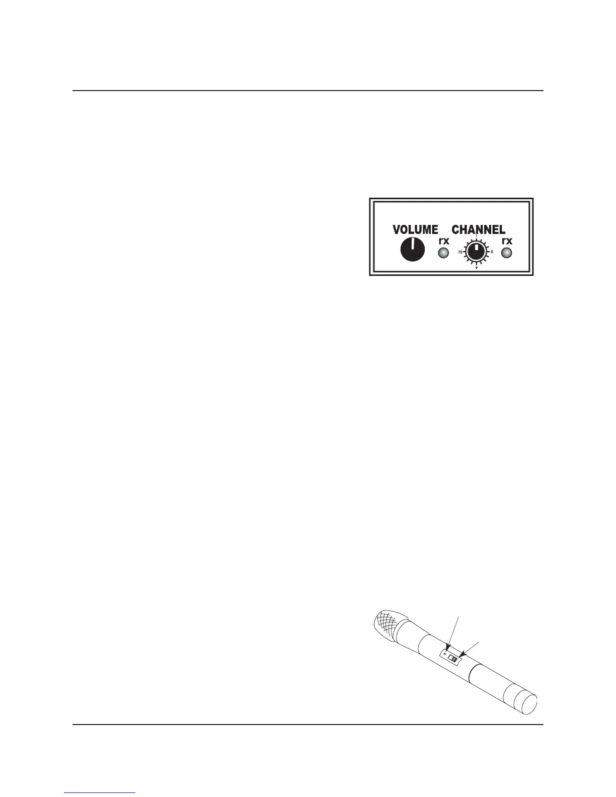 CHANNEL . . . . . . . . .Selects one of the Wireless Receiver 16 frequency channels.