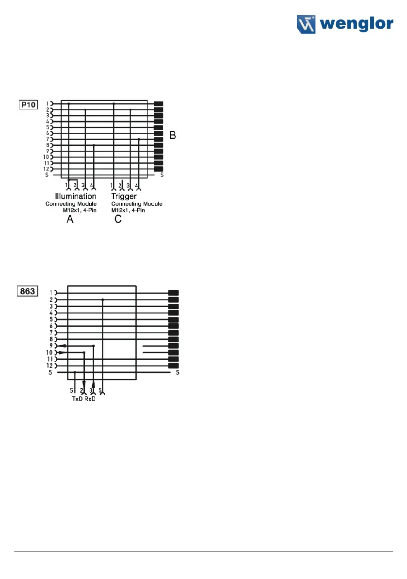 ZDCG001 M12×1 connecting module, 12-pin to trigger, illumination