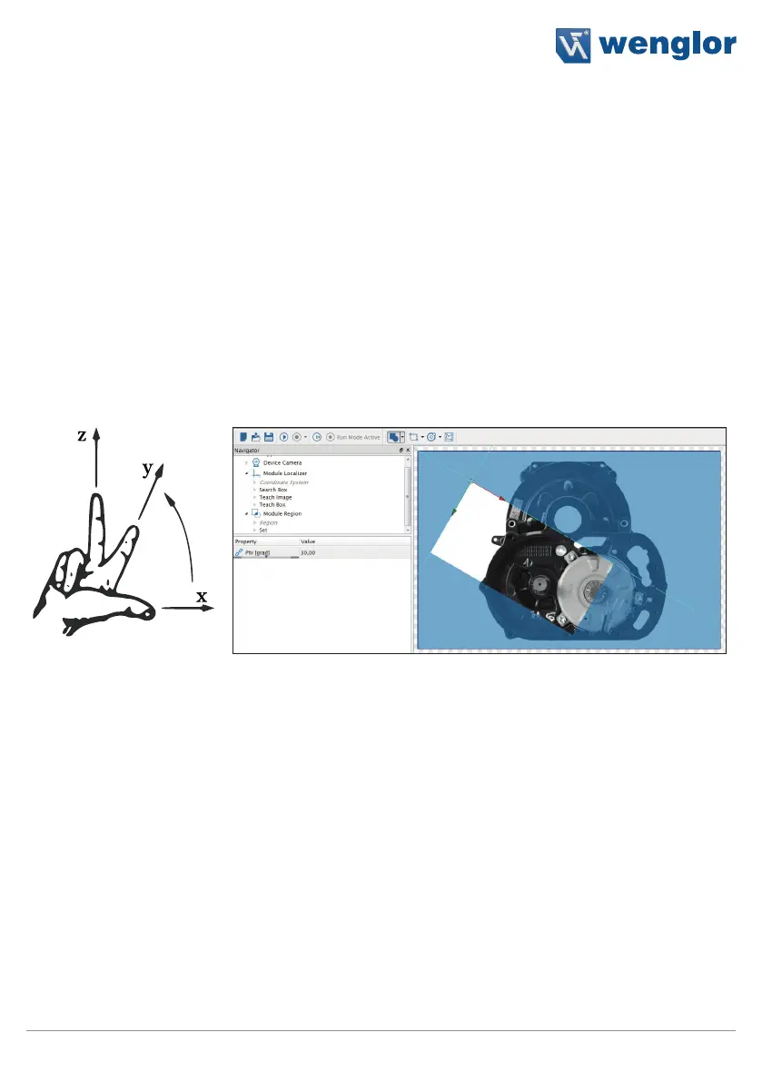 Note: The right handed coordinate system is rotated 180° by the X-axis to