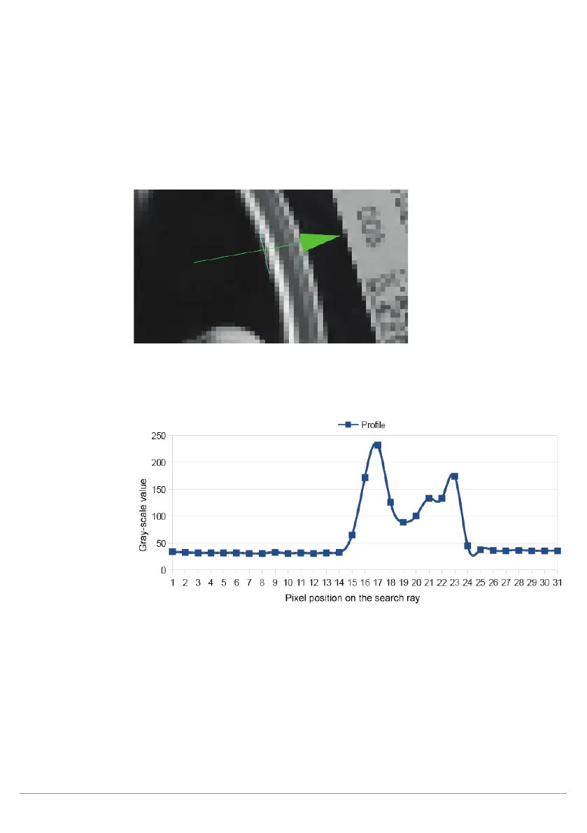 The search line’s gray-scale values are represented in the profile.