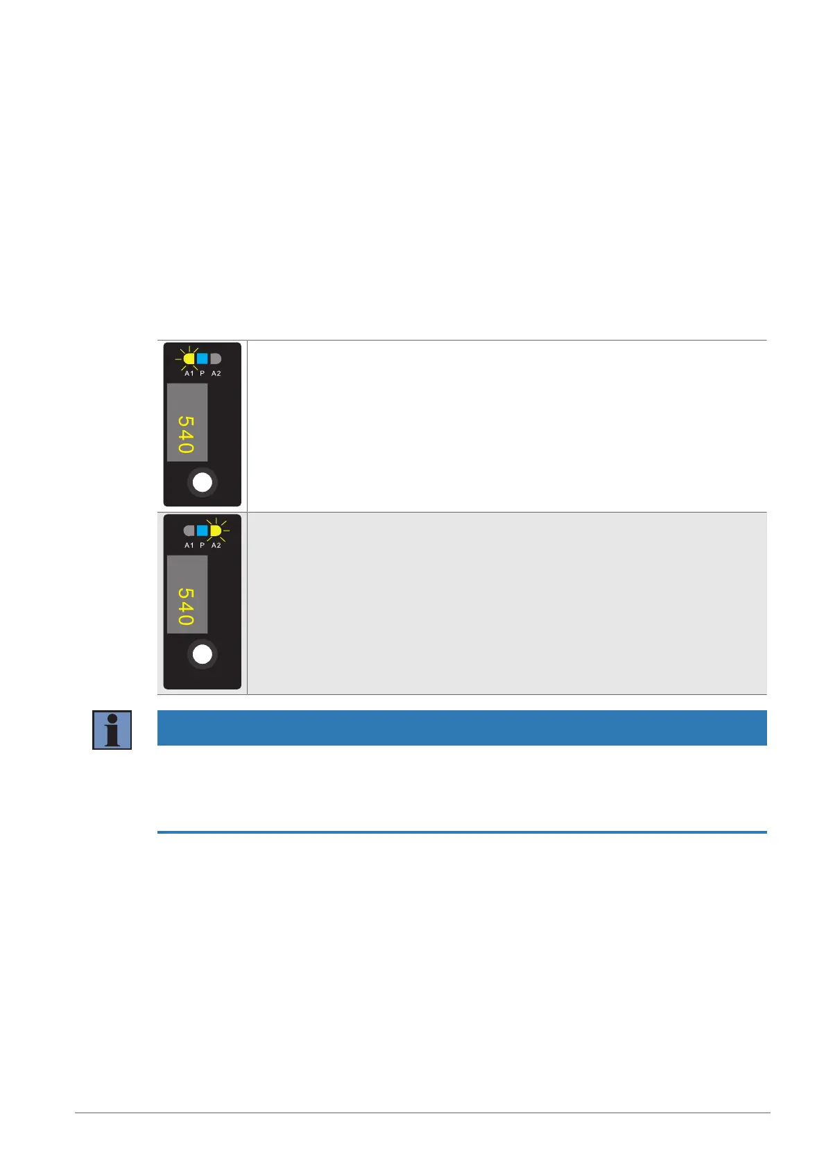 2. Press and hold the Teach-in key or Enter key for 2seconds until LEDA1 starts to