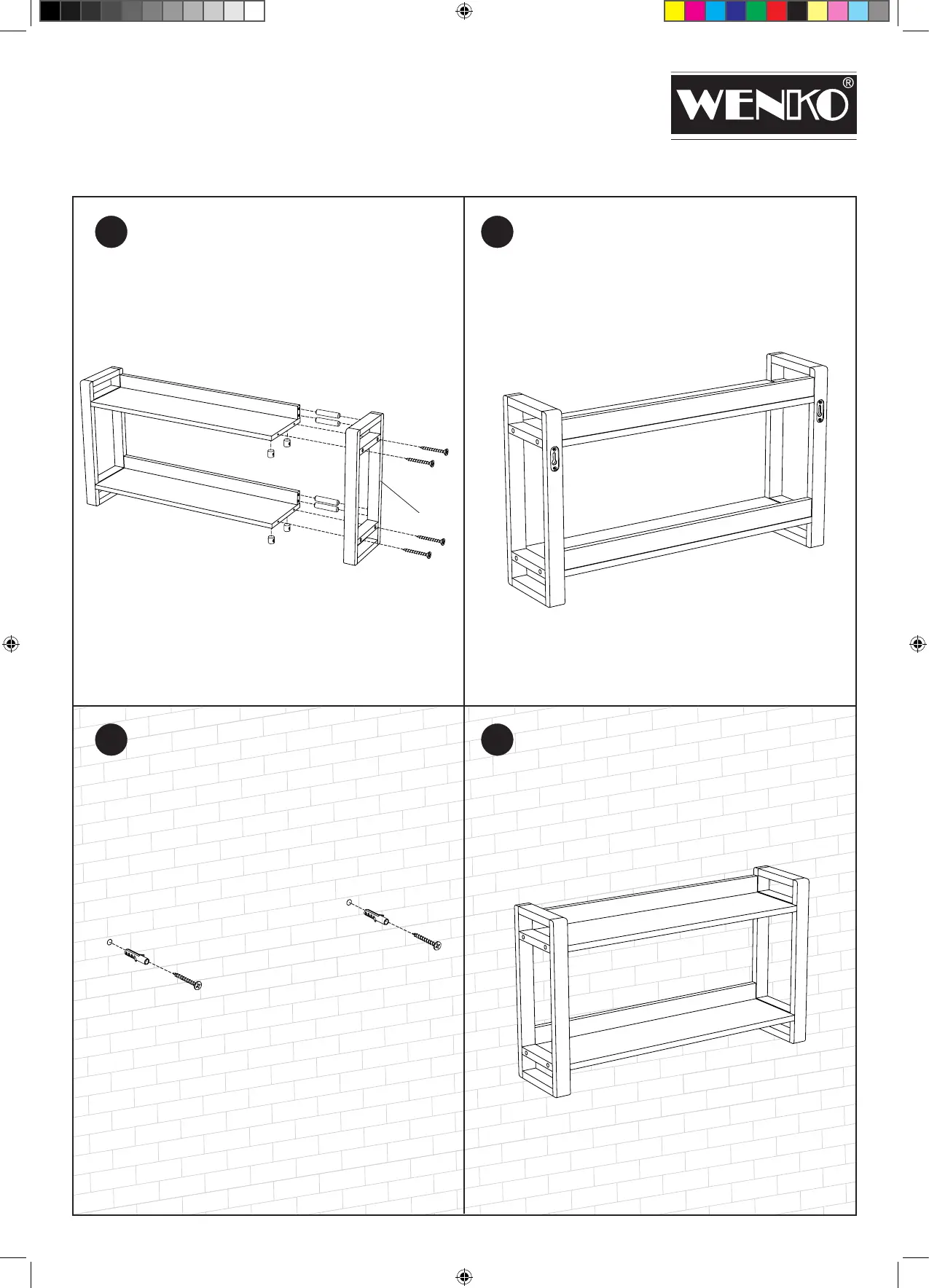 WENKO Finja - Step 3: Securing Rear Panel and Side; Step 4: Assembled Unit Overview; Step 5: Wall Mounting Procedure; Step 6: Final Wall-Mounted State