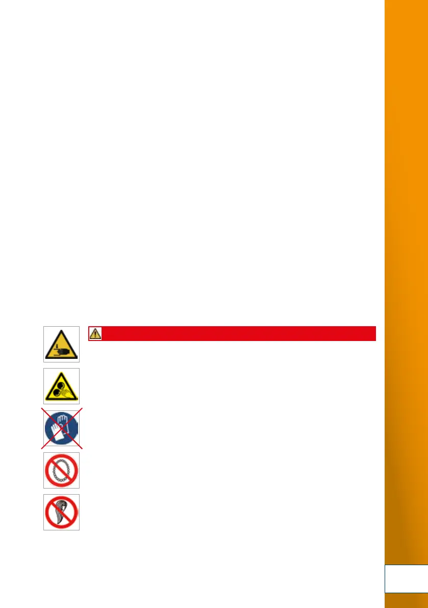 with a hairnet. Do not operate the device with gloves, as there is a risk of