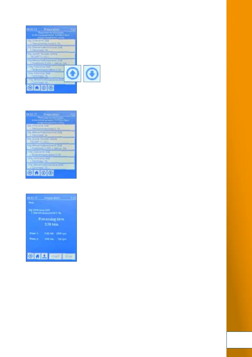 6. Display of the stored system parameters for 20 g cooling cream