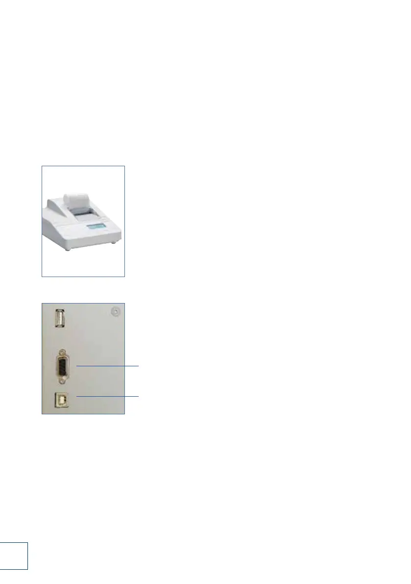 The printer interface (RS 232, serial port) is located