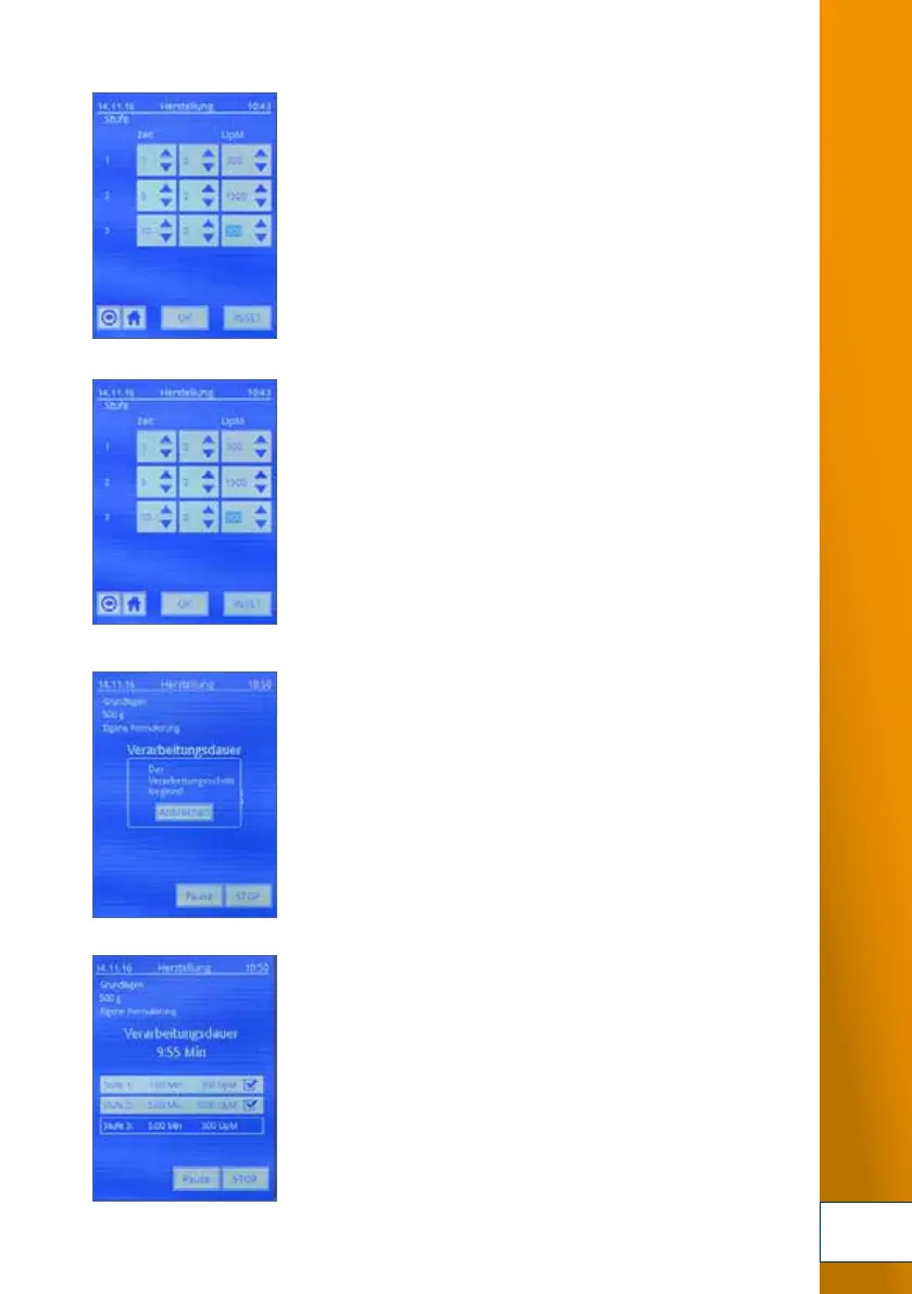 z. B. 3. Stufe 10 : 00 Minuten : 300 UpM