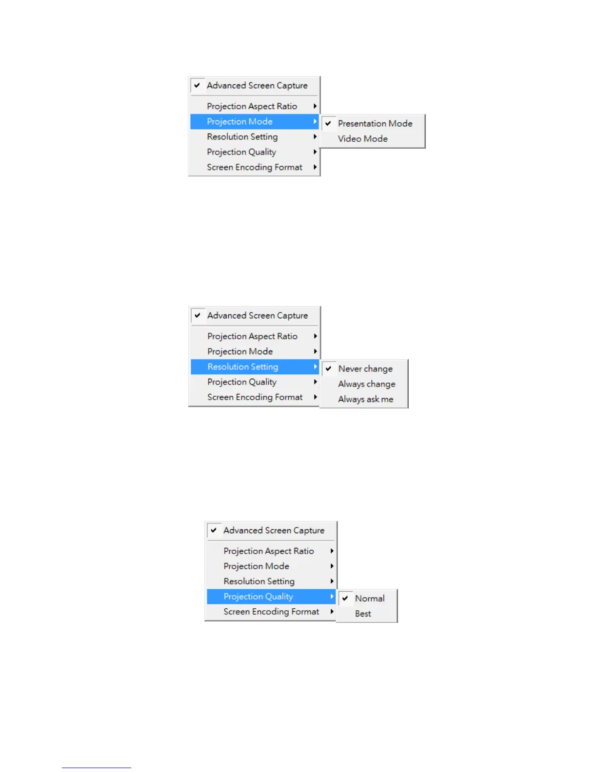 1) Click on “Projection Quality”, choose “Normal” for faster projection speed with