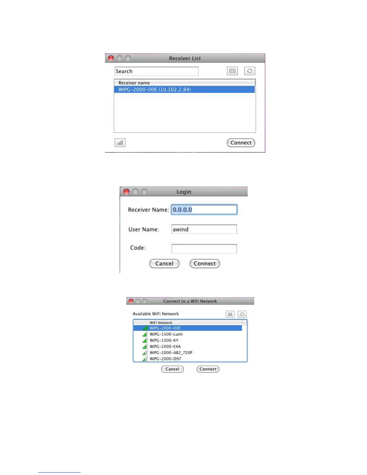 1) When connecting to a “Code” protection enabled WiPG-2000 receiver, you have to