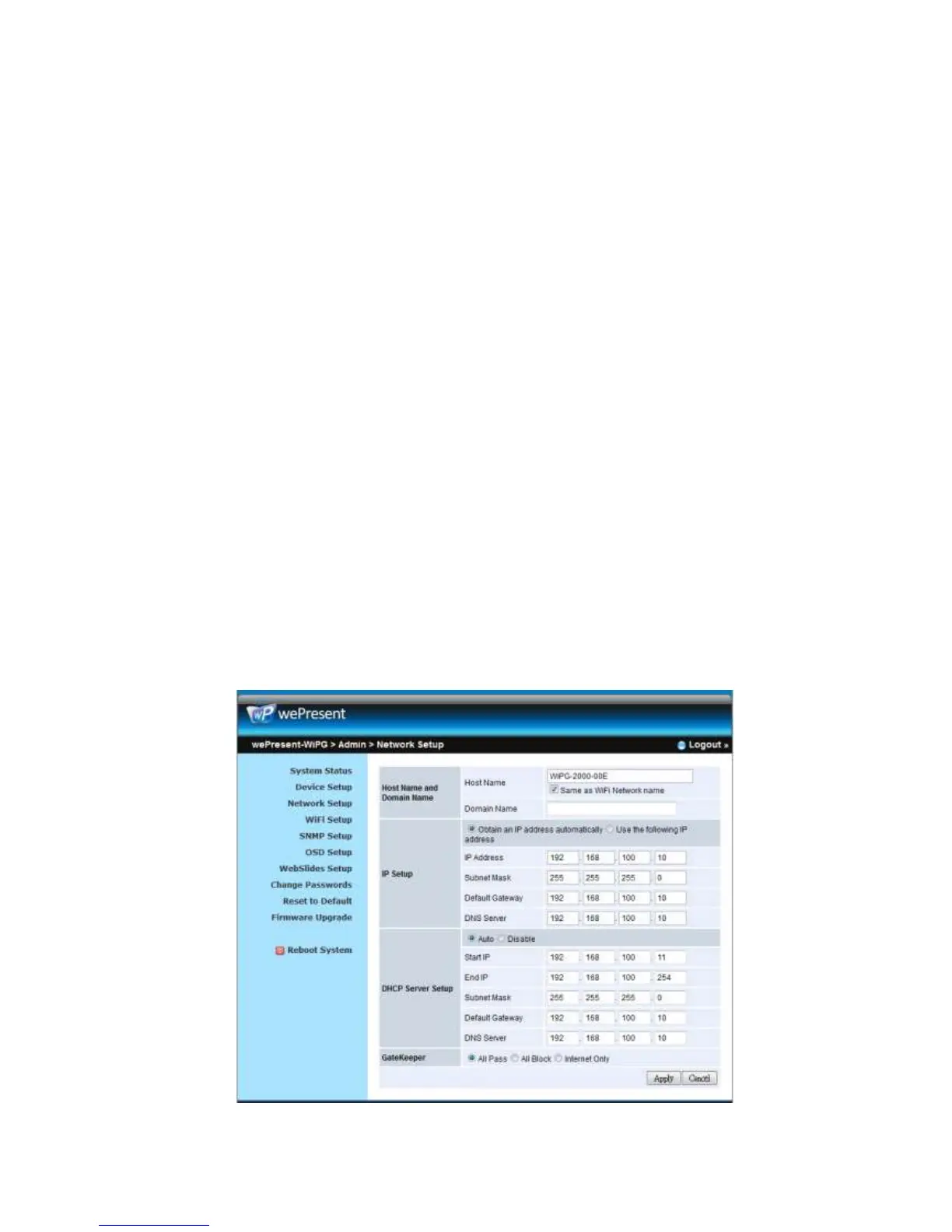 z You can select “auto” option. WiPG-2000 will auto disable the DHCP server