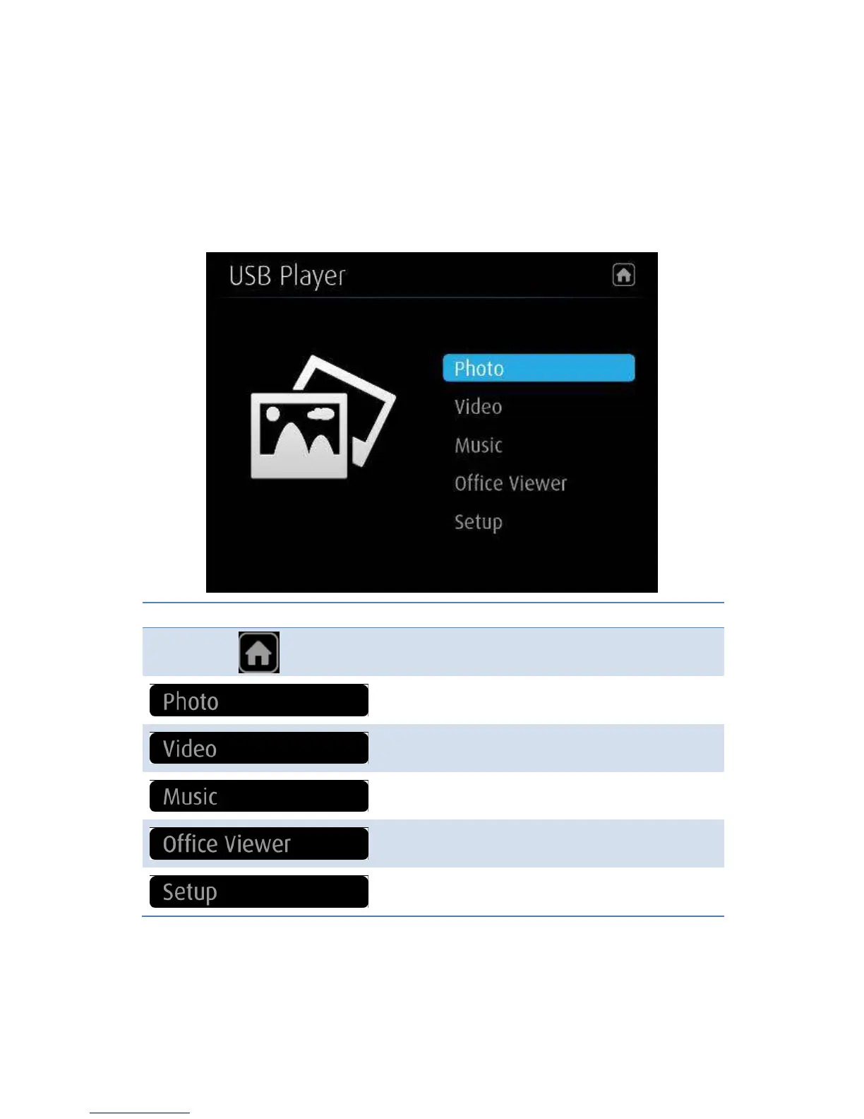 The USB Player can playback the files stored in the attached USB drive, it can support